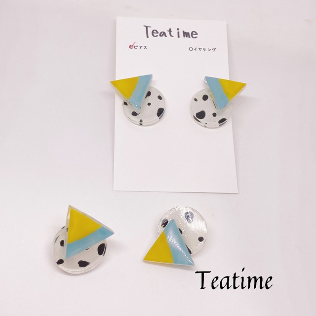 人気のクッキーアンドクリーム柄に、ツートンカラーのトライアングルを組み合わせたデザイン! 今回はイエロー&水色になります。 この夏はカラフルな大ぶりアクセサリーで誰よりも目立っちゃおう! ピアス、イヤリング、マグネットピアスよりお選びいただけます。