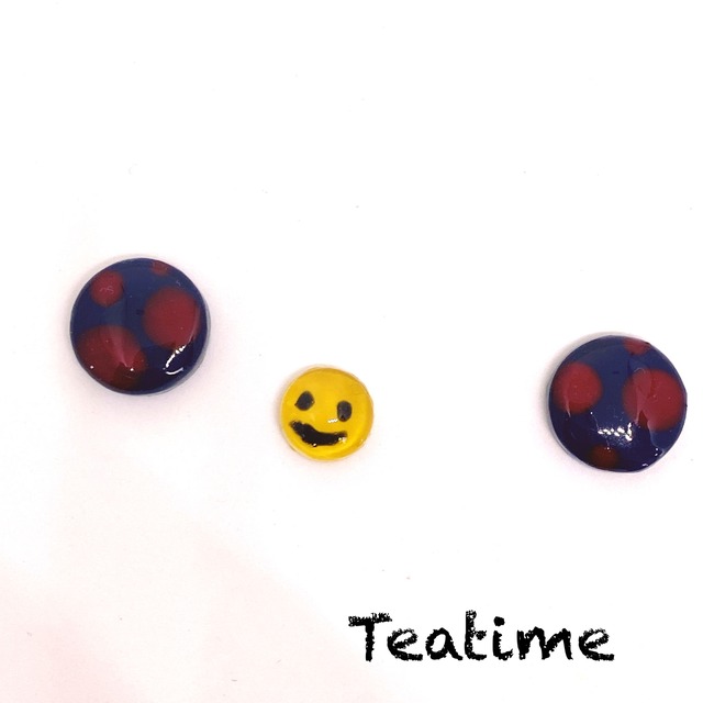 スマイルいり3粒セット ドット模様 ピアスまたはマグネットピアス ネイビー&レッド