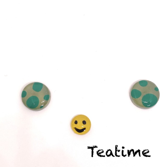 スマイルいり3粒セット ドット模様 ピアスまたはマグネットピアス カーキ&グリーン