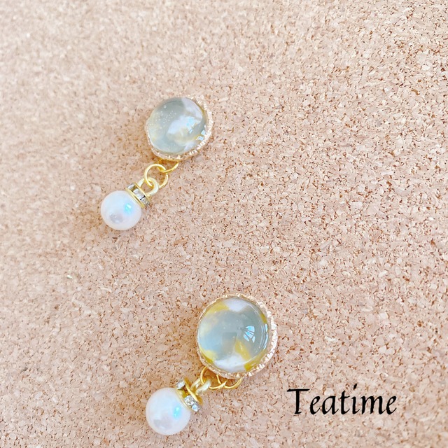 マーブル模様のカボションアクセサリー 魔法の鏡のような不思議カラー ピアス、イヤリング、マグネットピアスより選択可 グリーン