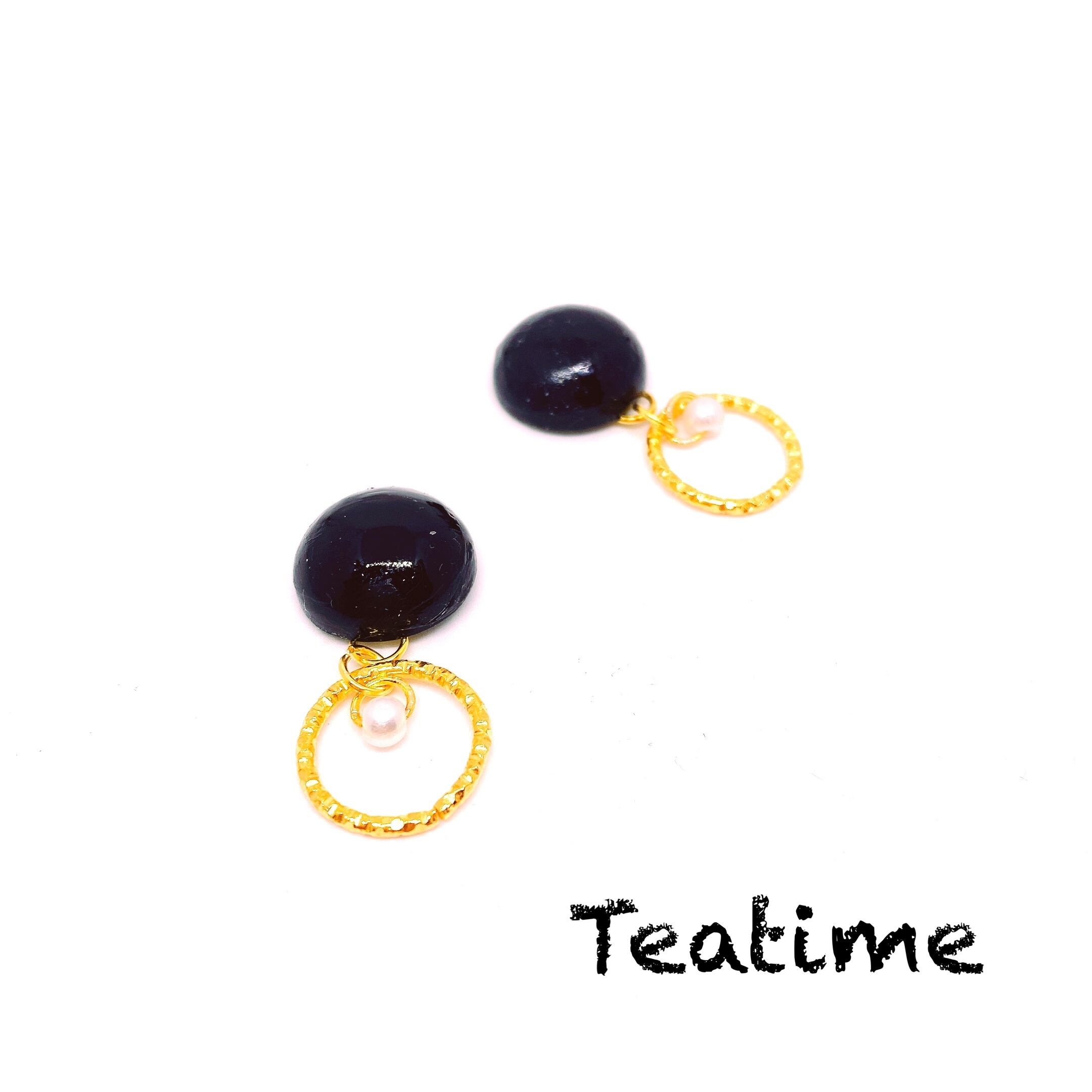 ブラックのパーツにゴールドリングを組み合わせた可愛らしいアクセサリー。